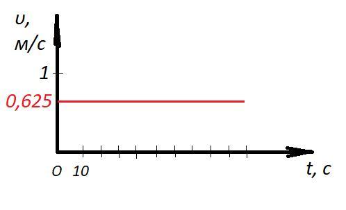 S=5 м; t=8 с. Подставим в формулу координаты точки 5=а*8 ⇒ а=5/8=0,625 м/с. Значение а соответствует скорости тела - она постоянна υ=0,625 м/с. делаем вывод тело движется с постоянной скоростью - это равномерное движение. График скорости указан на рисунке.