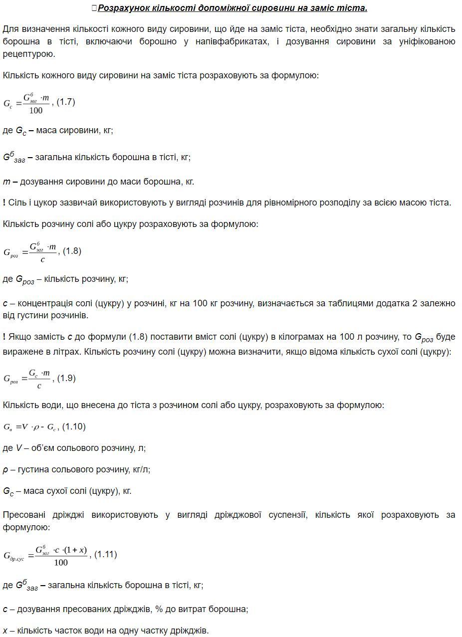 (формула 1.7) G солі = G борошна * 1.5% = 60 * 1.5% = 0.9 кг
