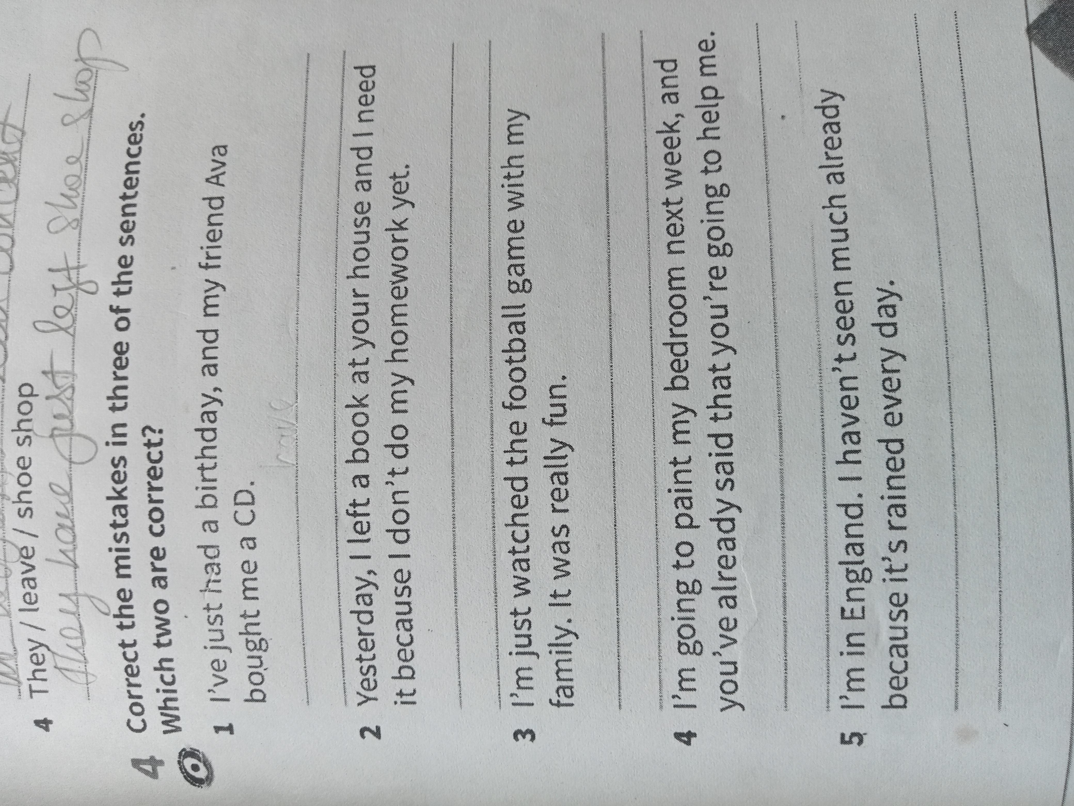 5. I'm in England. I haven't seen much already because it's rained every day. → I'm in England. I haven't seen much yet ...