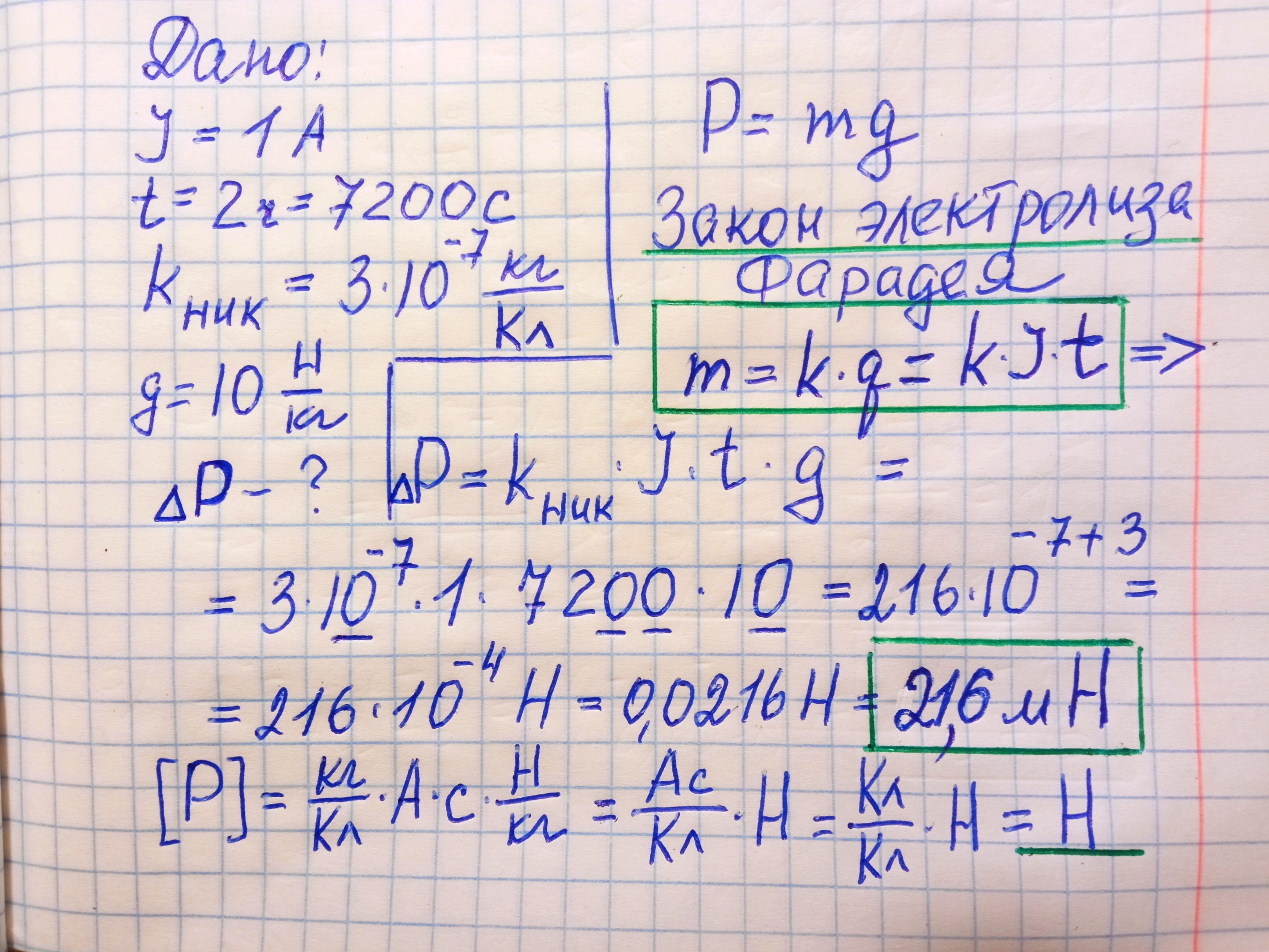 Никелирование металлической пластины осуществлено силой тока 1 А в течение 2 часов. На сколько изменится вес электрода покрытого никелем?