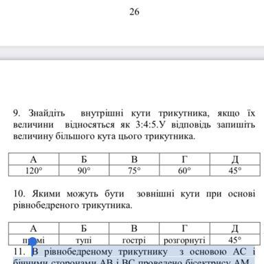 Знайдіть внутрішні кути трикутника, якщо їх величини відносяться як 3:4:5.У відповідь запишіть величину більшого кута цього трикутника
