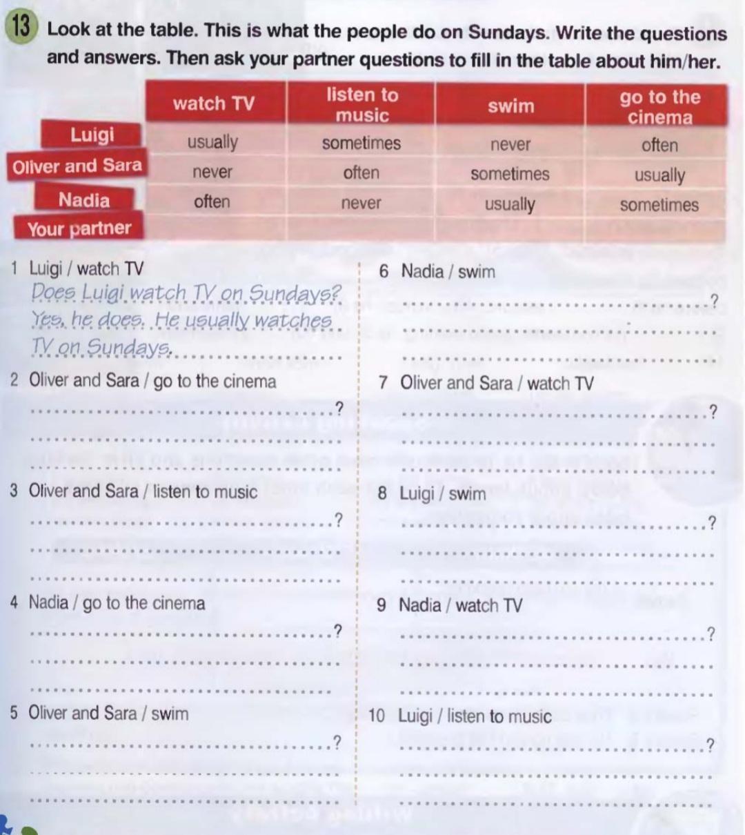 5. Do Oliver and Sara swim on Sundays? Yes, they do. Oliver and Sara sometimes swim on Sundays.