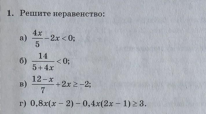 г) 0,8x(x-2) - 0.4x(2x-1)≥3;