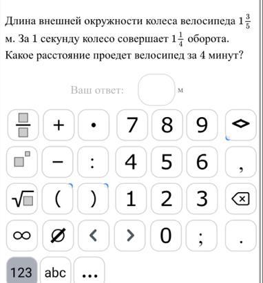 2 м * 240 секунд = 480 (м) - проезжает колесо велосипеда (и сам велосипед) за 4 минуты