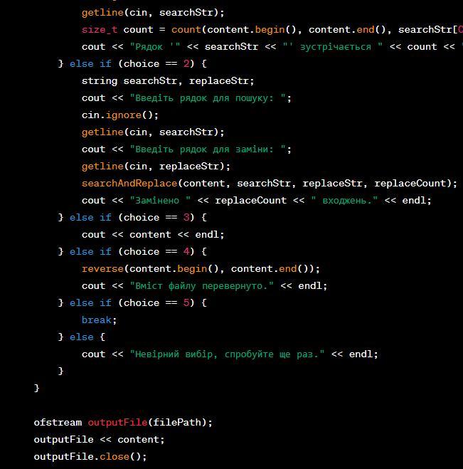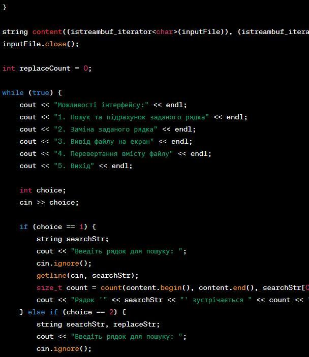 ■ Пошук заданого рядка (як підсумок показувати статистику пошуку рядка по всьому файлу);