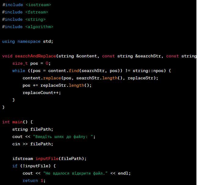 ■ Заміна рядка на новий рядок (як підсумок показати статистику по заміні рядка);