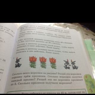 (2)18:3=6(КРОЛИКОВ)-ПОЛУЧАТ МОРКОВКИ.