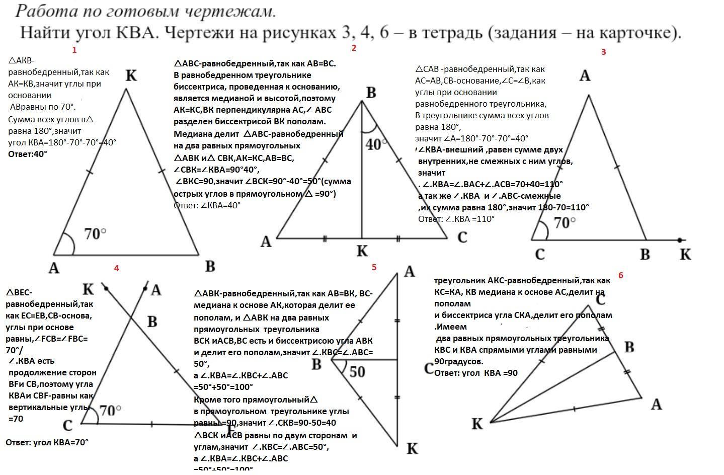 1)40°;2)40°;3)110°; 4)70°,5)100° 6)90°