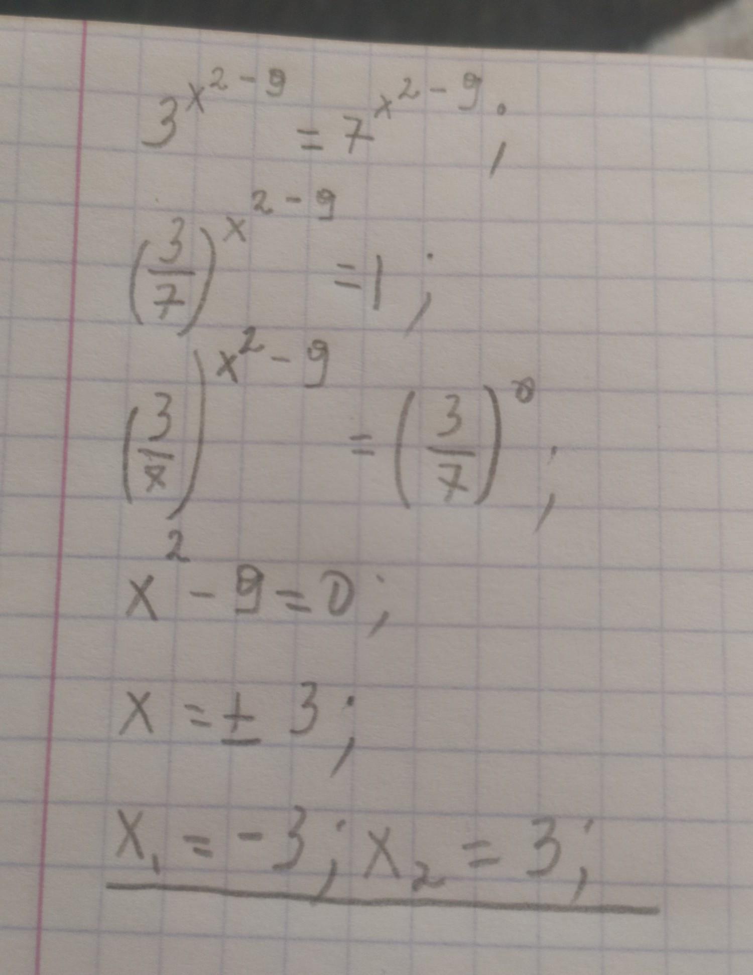 3^( x² - 9 ) = 7^( x² - 9 ) ;