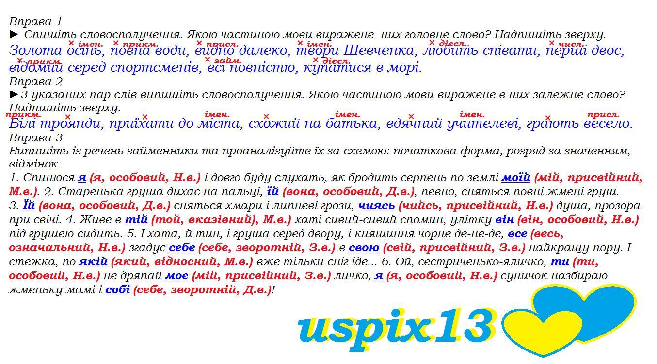 ►3 указаних пар слів випишіть словосполучення. Якою частиною мови виражене в них залежне слово? Надпишіть зверху.