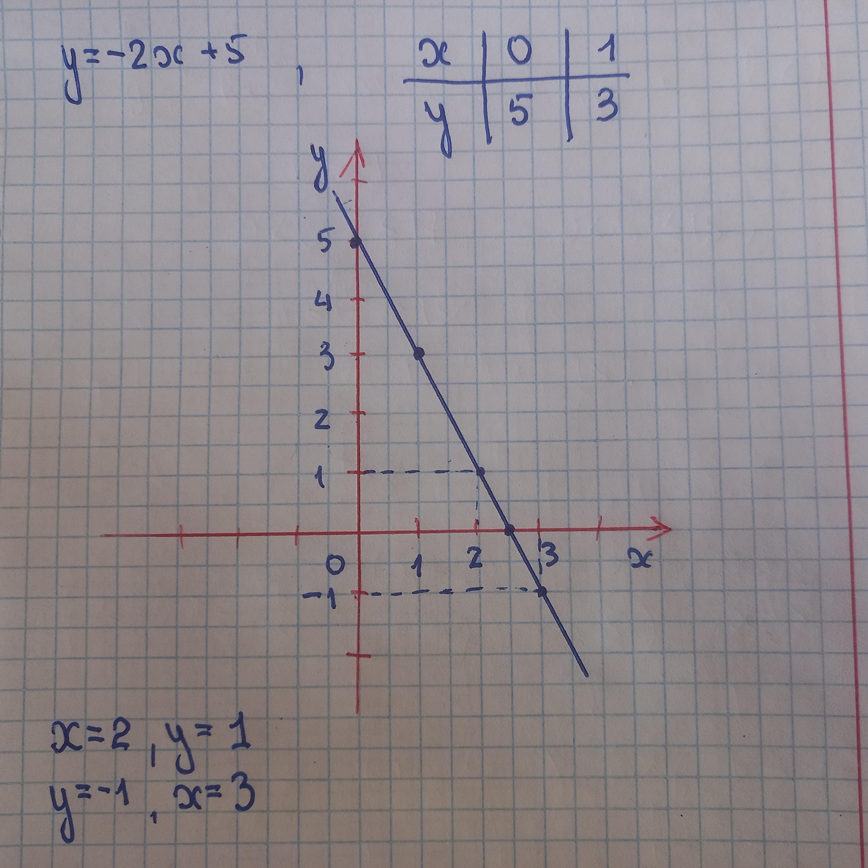 2.° Побудуйте графік функції у =-2x+5. Користуючись графі-