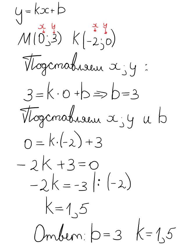 М(0; 3) : { k*0 + b = 3 ; ⇒ { b = 3 ;