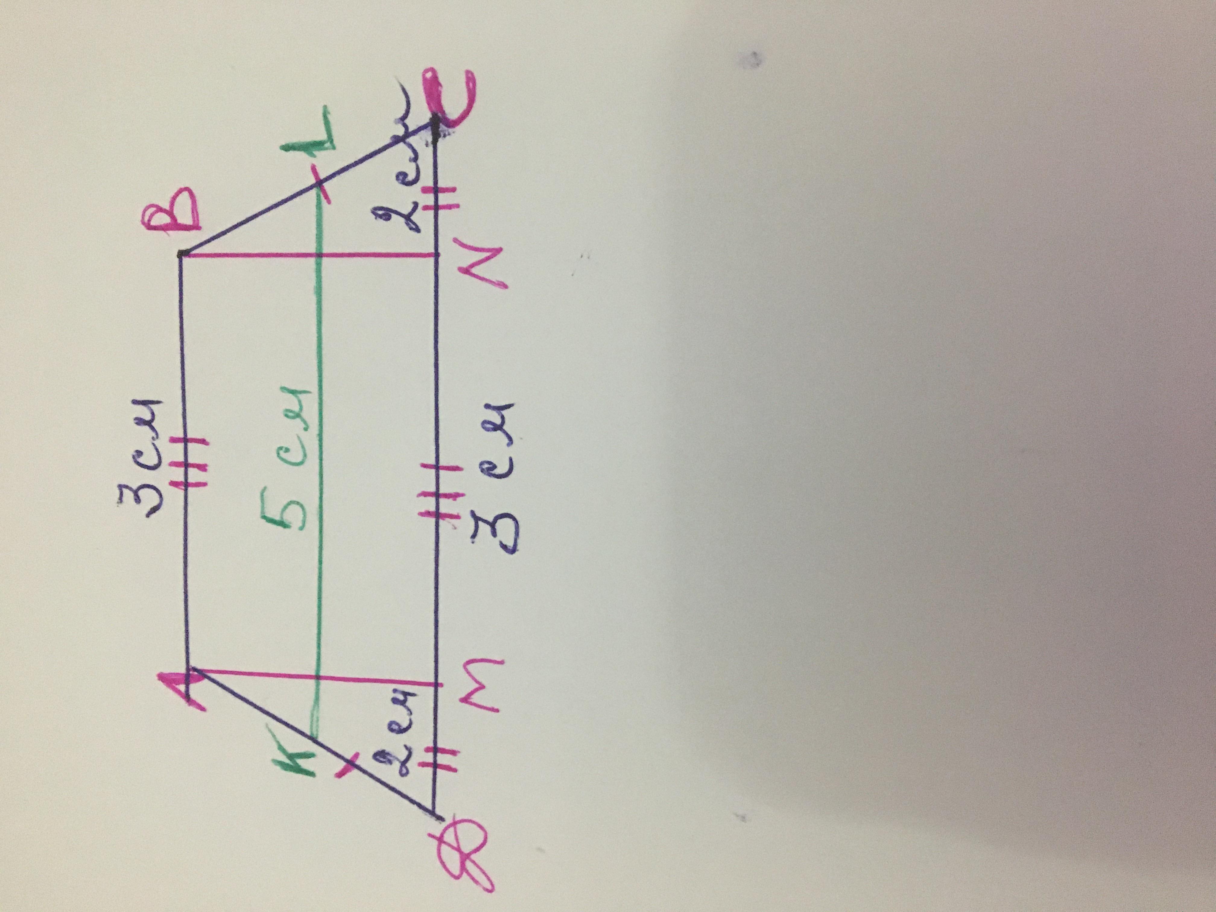 больше основание 2+5=2+(3+2)=7 см меньшее 3 см