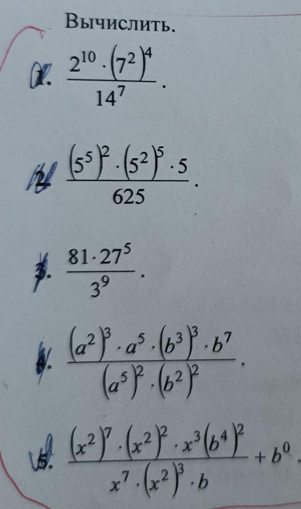 5. ((x^2)^7 * (x^2)^2 * x^3 * (b^4)^2) / (x^7*(x^2)^3 * b) ) + b^0 =