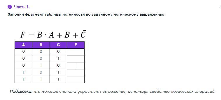 Таблица истинности: