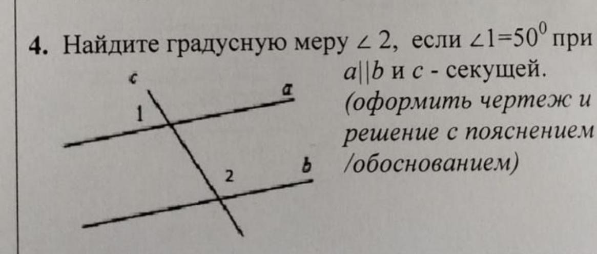 Угол 1 = угол 3 (как вертикальные углы) = 50°