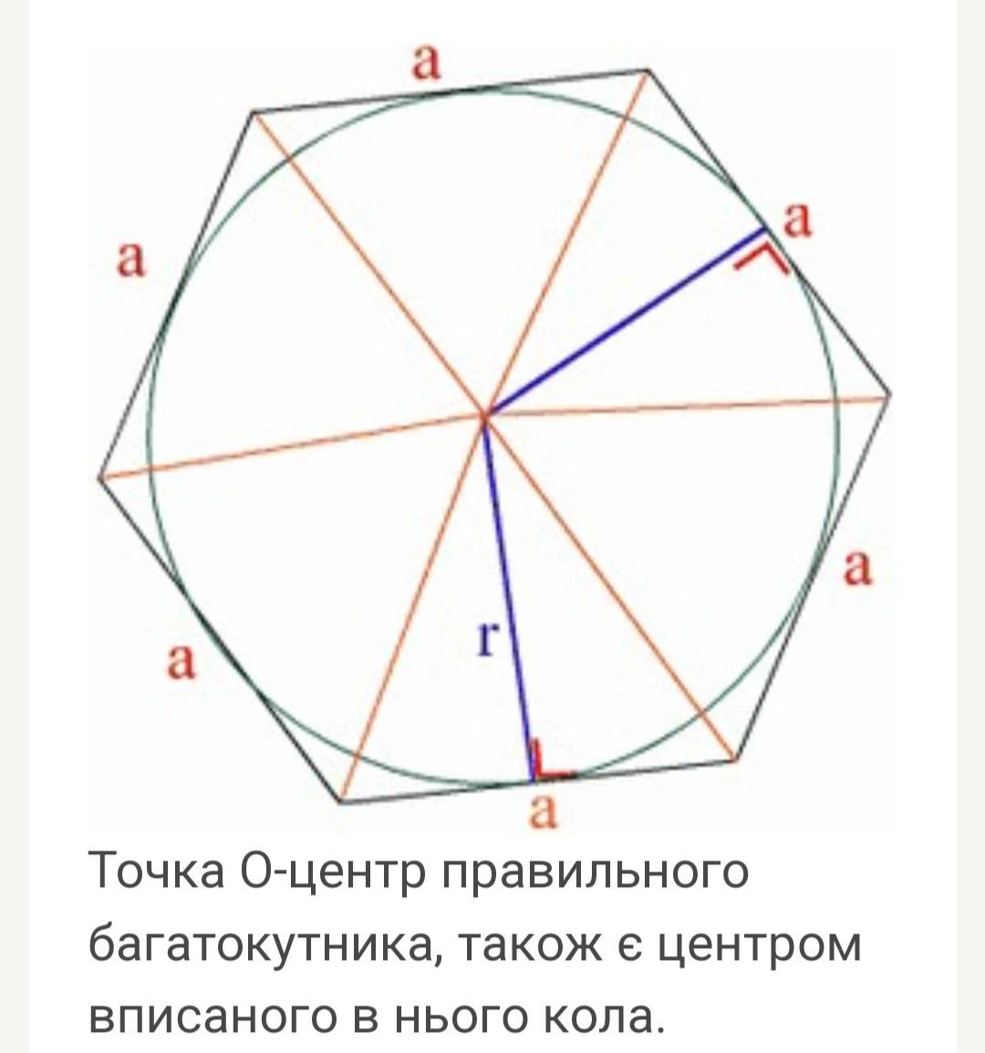 відомий факт - діагоналі правильного шестикутника ділять шестикутник на 6 рівних правильних трикутників, де висота трикутника і є радіусом вписаного в шестикутник коло. Отже, r=а√3/2.