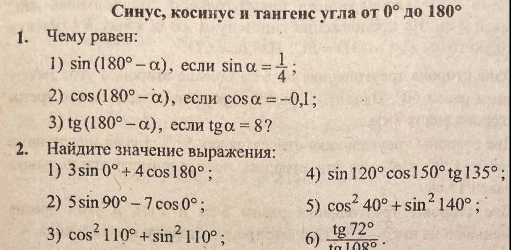 1 . 1) sin( 180° - α ) = sinα = 1/4 ;