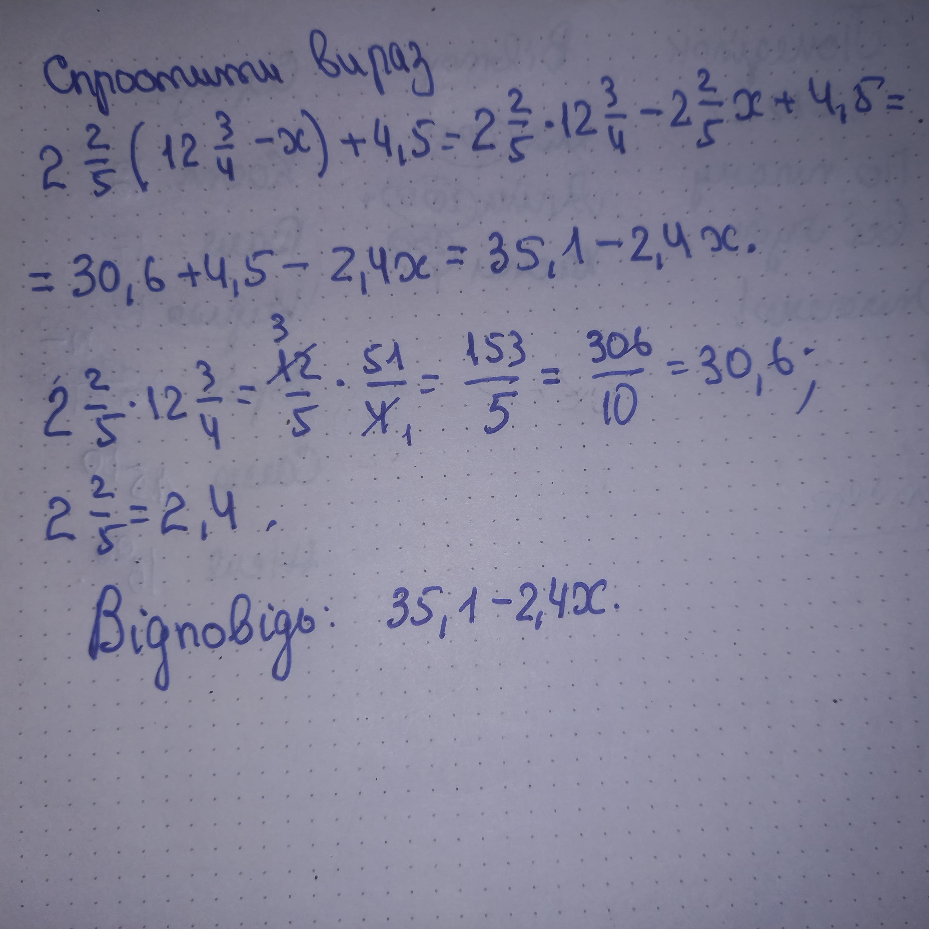 2 2/5 (12 3/4 -x)+4,5