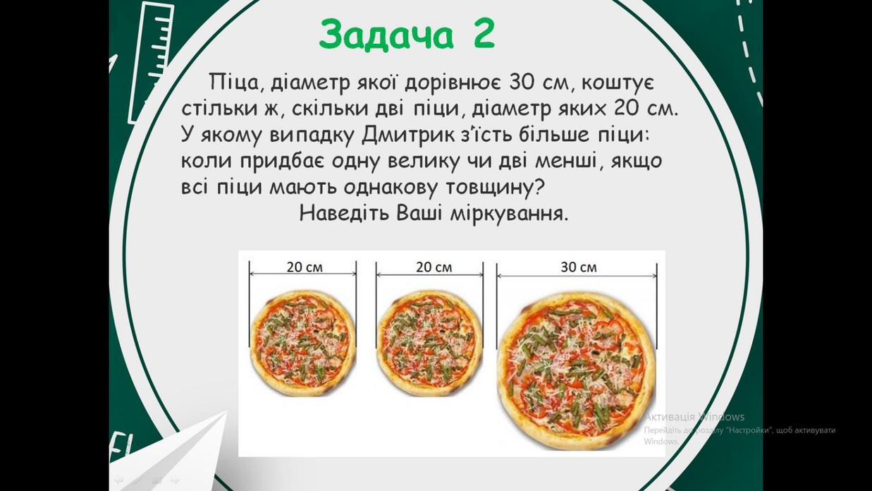 Выгоднее покупать одну пиццу диаметром 30 см
