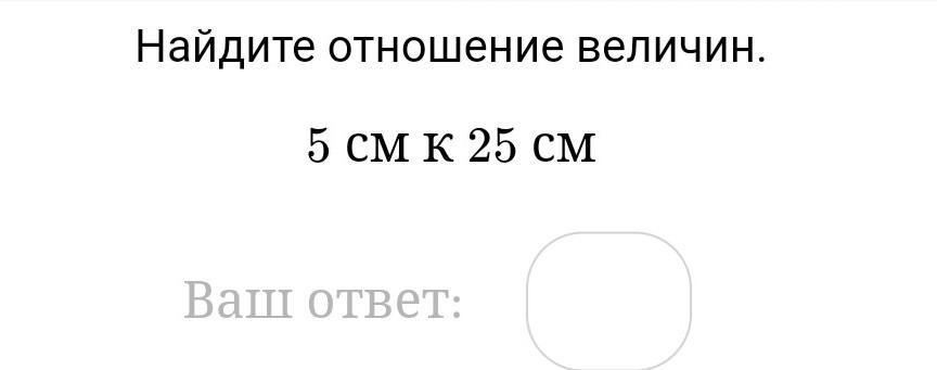 5 см к 25 см = 5/25 = 1/5 или 1 : 5