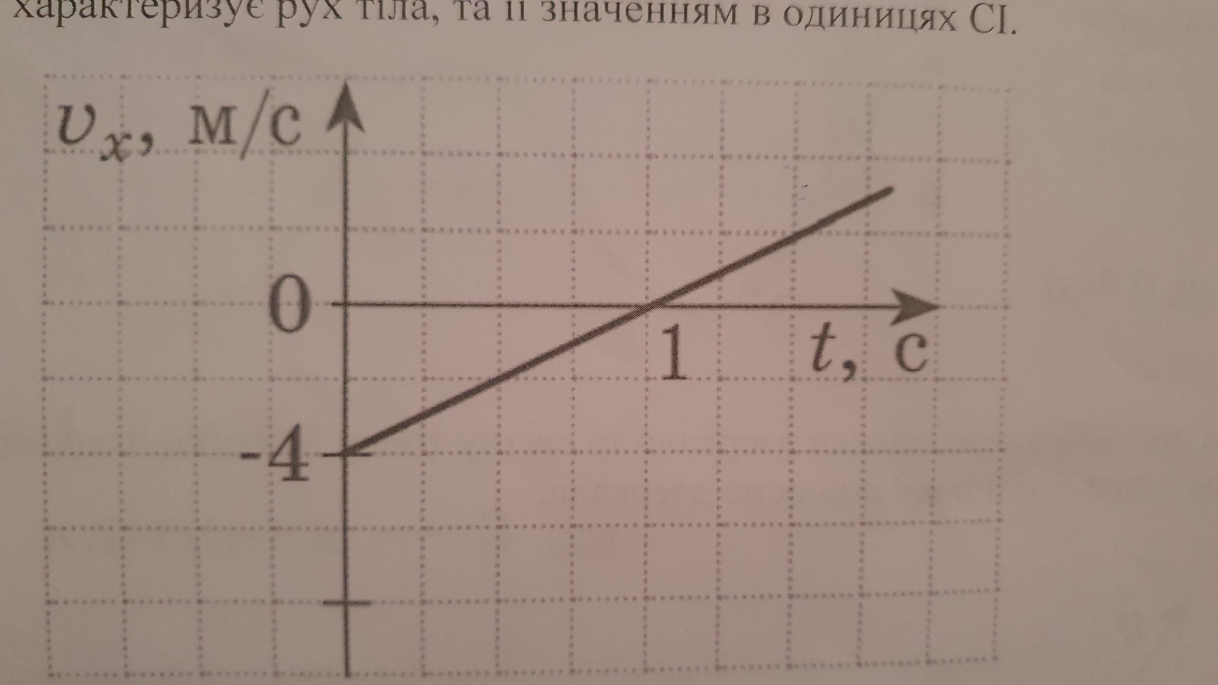 Тіло масою 1,5 кг рухається вздовж осі Ох, графік швидкості його руху подано на рис. Установіть відповідність між фізичною величиною, що характеризує рух тіла, та її значенням в одиницях СІ.