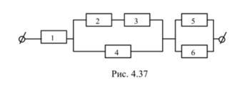 К электрической схеме, изображенной на рис. 4.37, приложено напряжение U = 10 В. Сопротивления всех резисторов одинаковы и равны R = 10 Ом. Чему равна сила тока в первом резисторе? Какая мощность выделяется на четвертом резисторе?