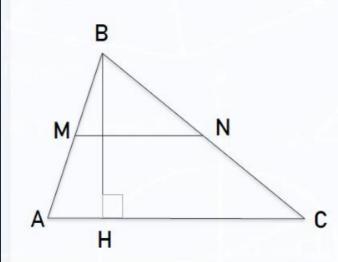 △ ABC; средняя линия MN - 9 см; высота BH - 5 см