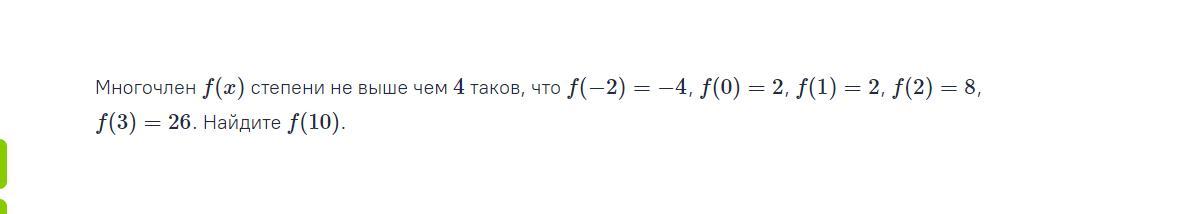Интерполяция. Решите не системой уравнений, с помощью интерполяционного полинома Лагранжа, или более простым методом