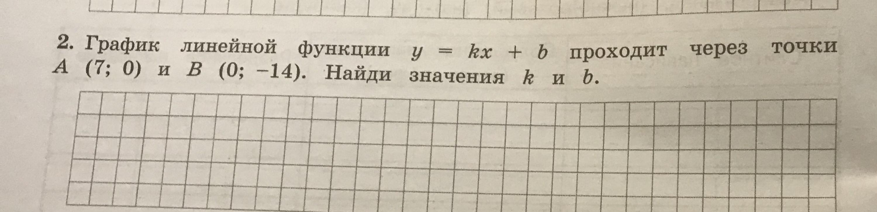 Ответ:k=2 ;b=-14 а сама прямая выглядит следующим образом: