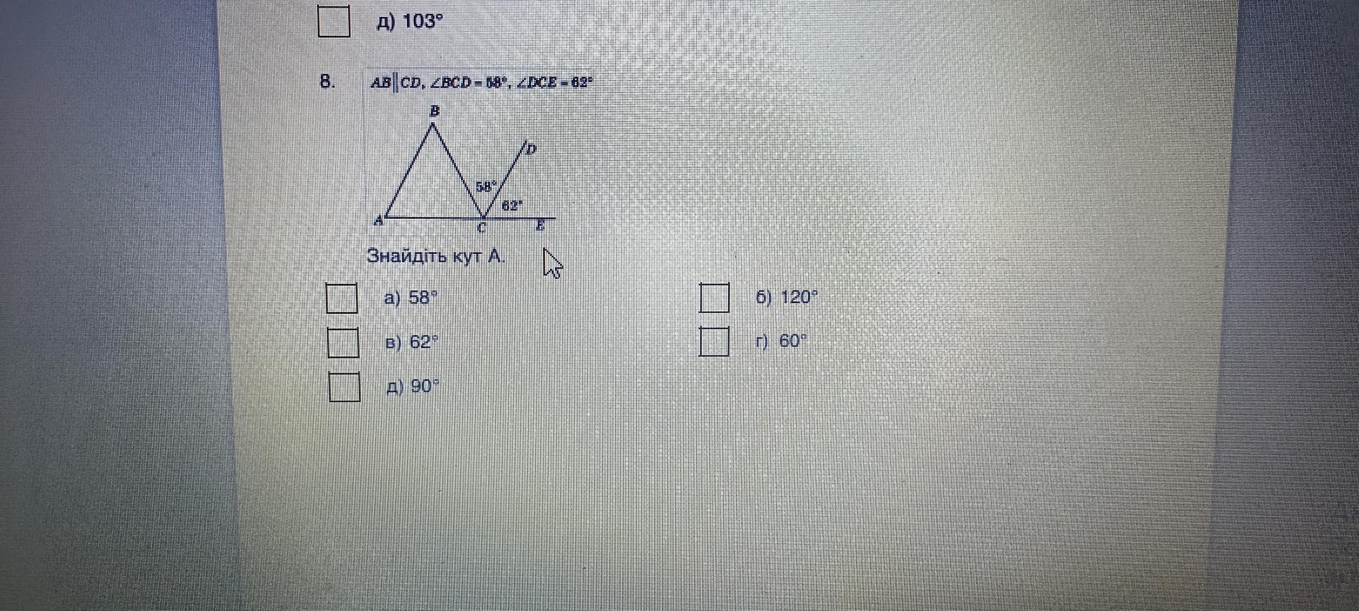 Не хоче друкувати текст. Напишу словами. Дорівнює куту DCE, що дорівнює 62 градуси, як ВІДПОВІДНІ.