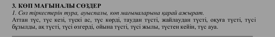 тус кезым мен басталып окуга тусты гедейын, сосын последовательно калган создерды жазасын