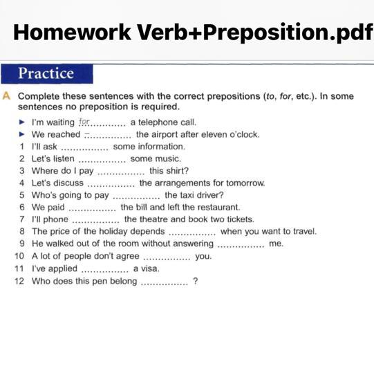 A Complete these sentences with the correct prepositions (to, for, etc.). In some