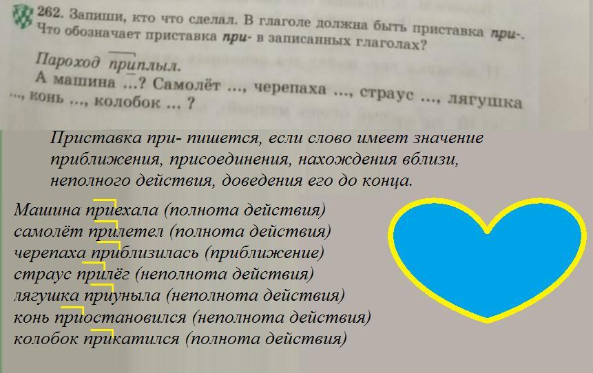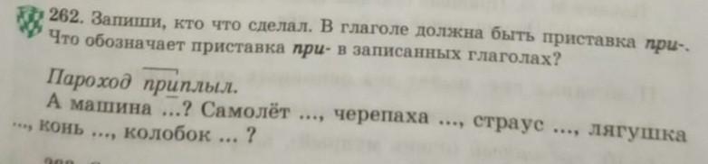 Запиши, кто что сделал. В глаголе должна быть приставка при-. Что обозначает приставка при- в записанных глаголах?