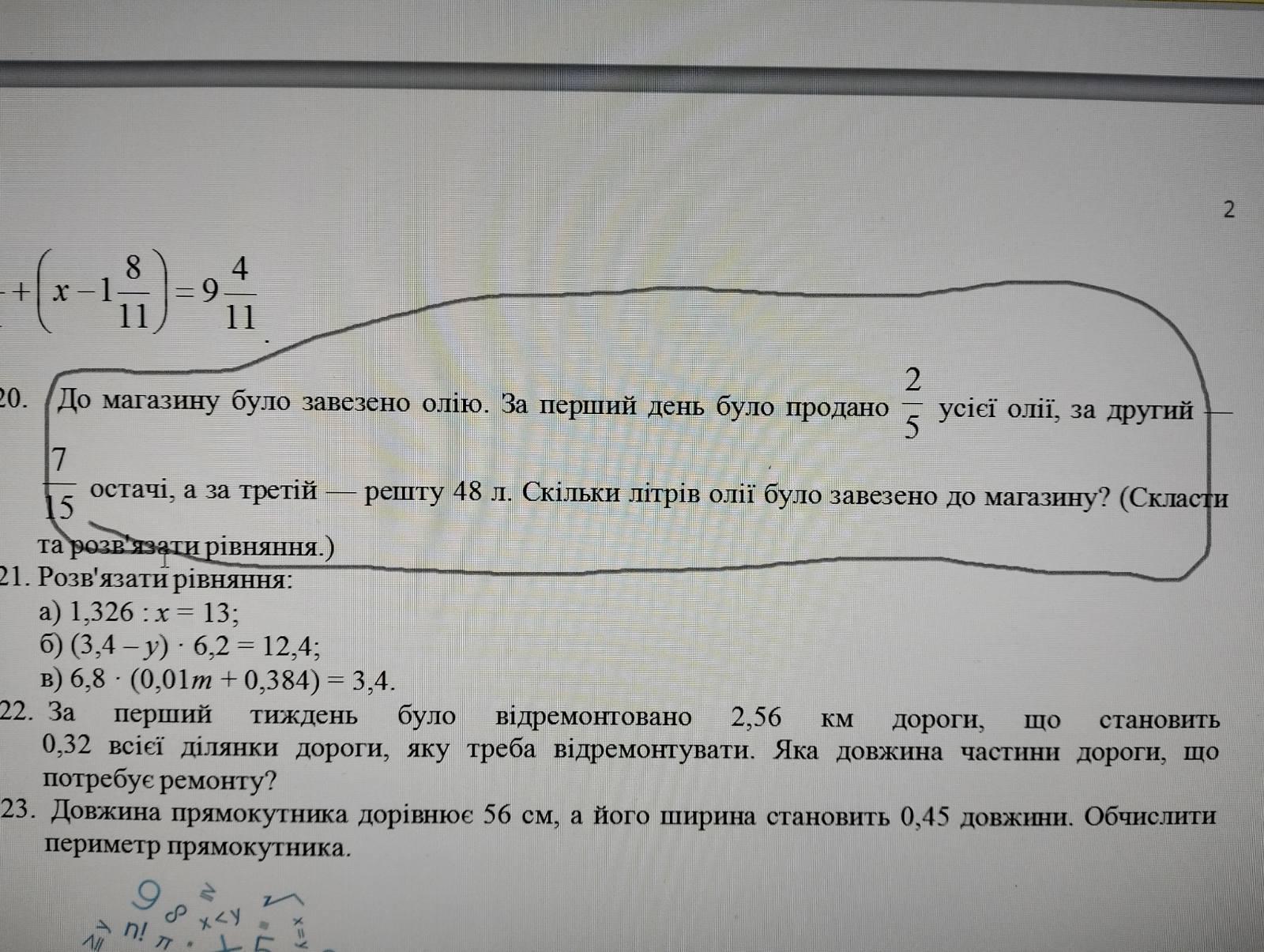 Продали во 2 день — 7/15 * (х - 2/5х) = 7/15 * 3/5х = 21/75х = 7/25х л масла