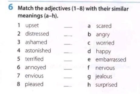 6 Match the adjectives (1-8) with their similar meanings (a-h).