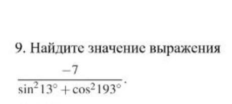 4) -7/(sin²13° + cos²193°) = -7/1 = -7.