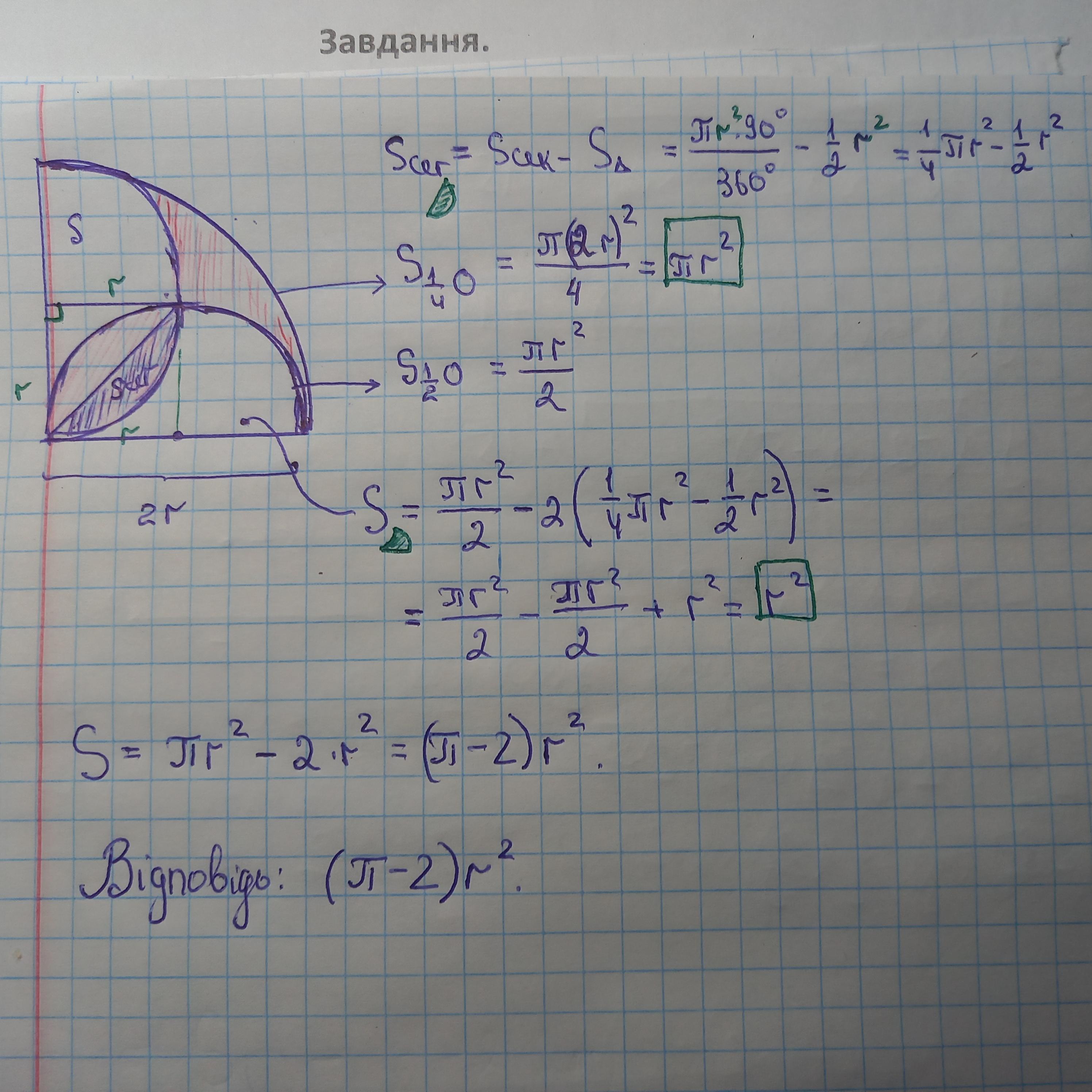 Четверть круга радиуса 2r равна двум полукругам радиуса r.