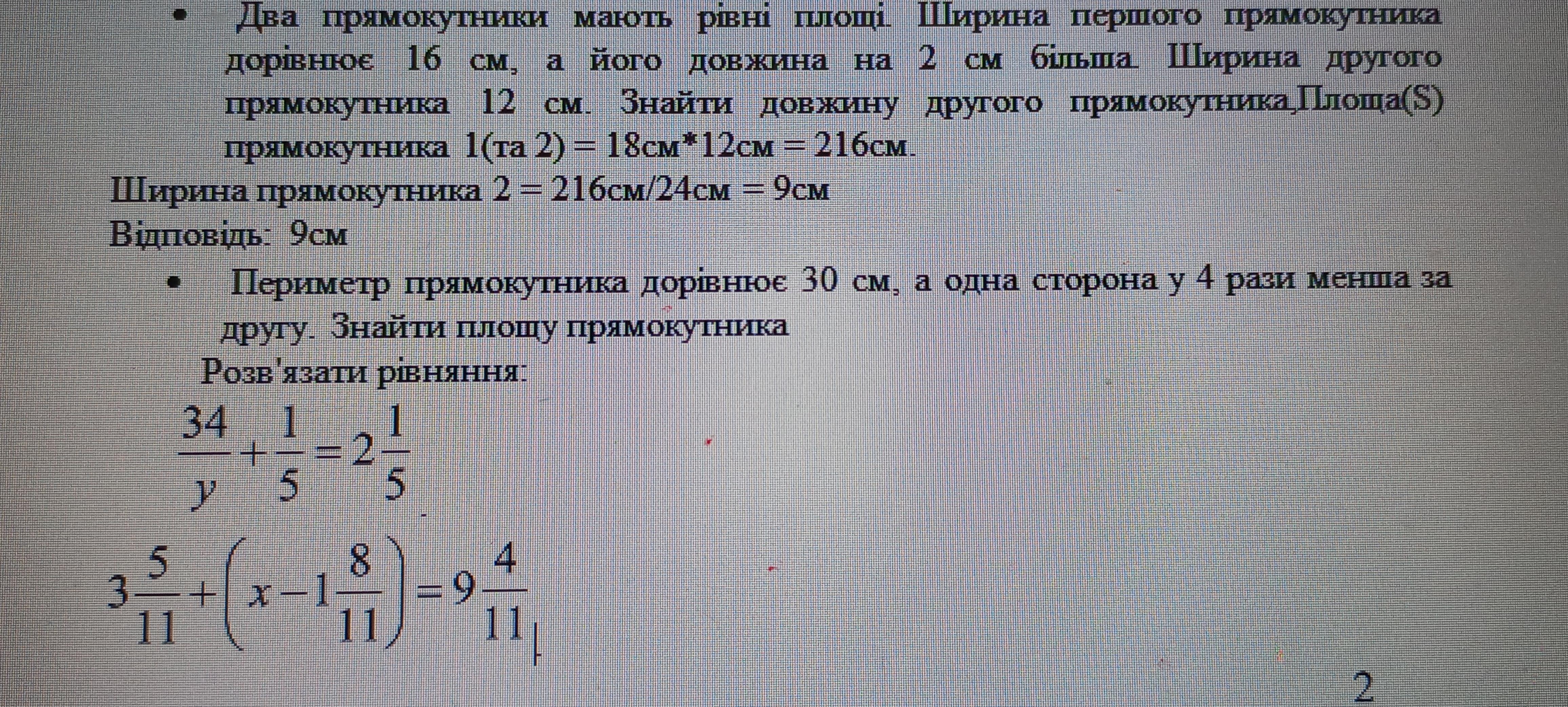 # 1 . Нехай ширина прямокутника має х см , тоді його