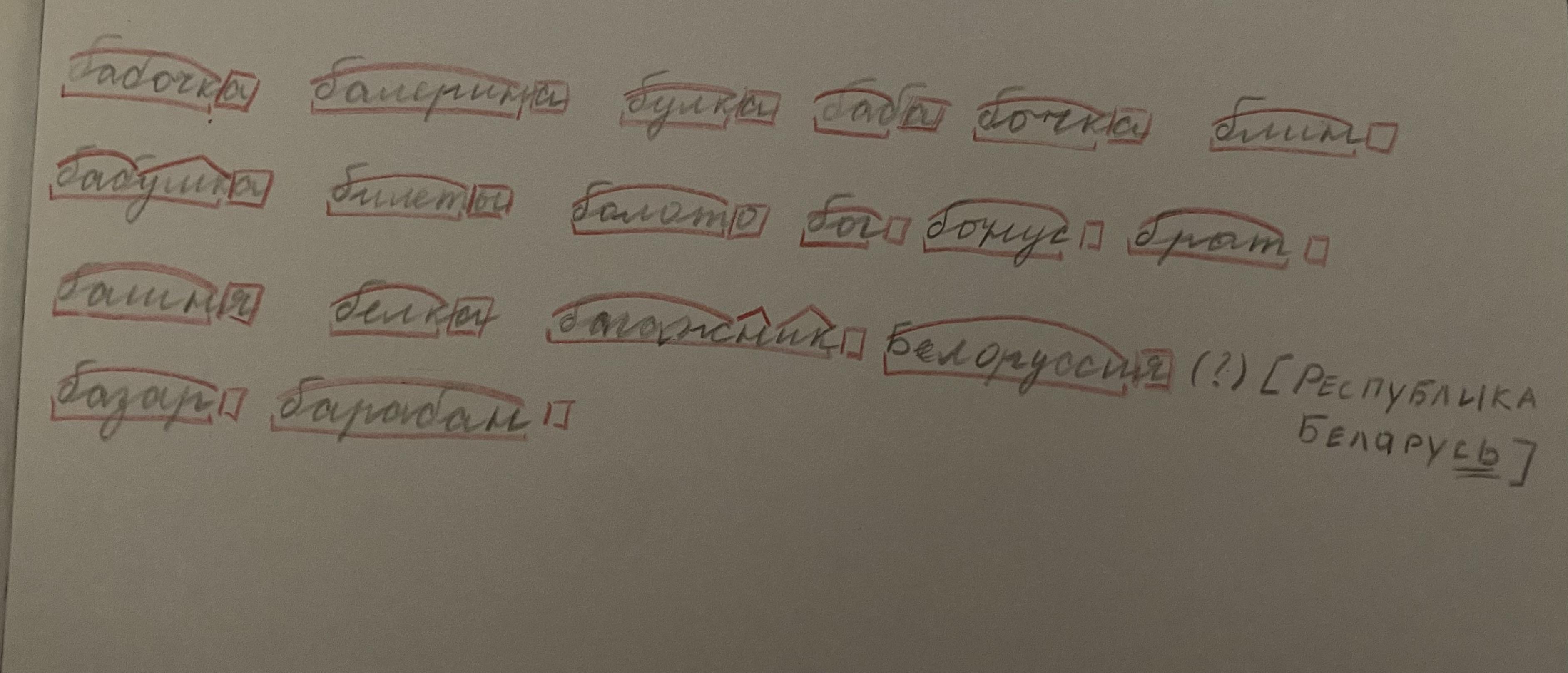 бабочка балерина булка баба бочка блин бабушка билеты болото бог бонус брат башня белка багажник Белоруссия базар барабан