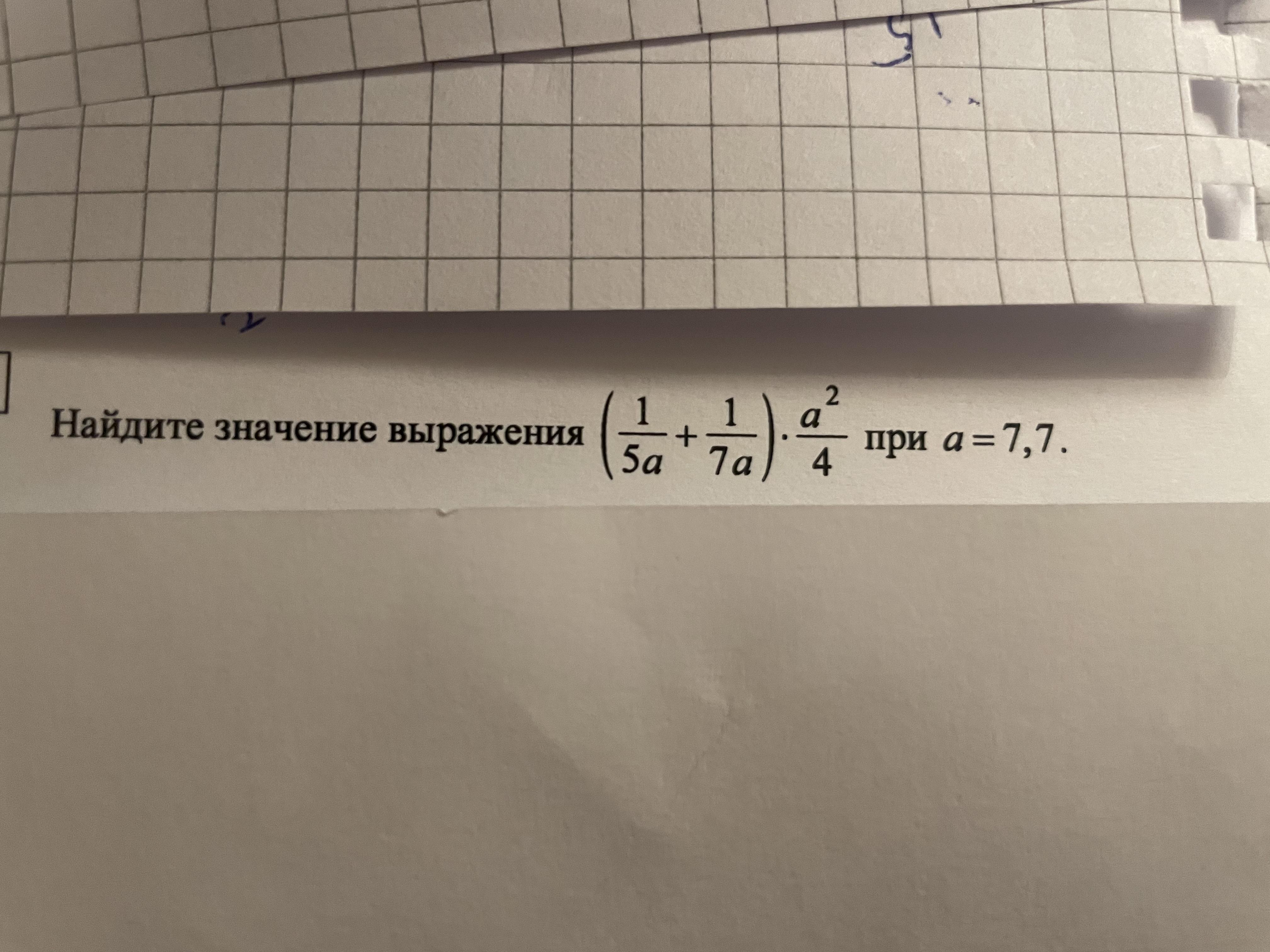 \displaystyle \left(\frac{1}{5a}+\frac{1}{7a}\right)\frac{a^2}{4} =\left(\frac{1}{5}+\frac{1}{7}\right)\frac{a}{4} = \frac{12a}{35\cdot4} = \frac{3a}{35} = \frac{3\cdot7.7}{35} = \frac{3\cdot1.1}{5} = 1.1\cdot0.6 =\\\\= 0.66