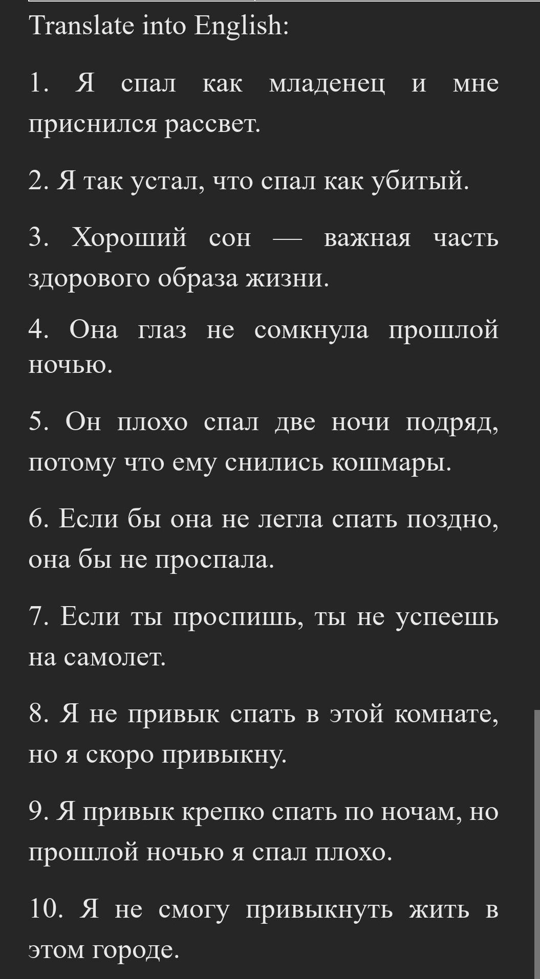 8. I'm not used to sleeping in this room, but I'll get used to it soon.