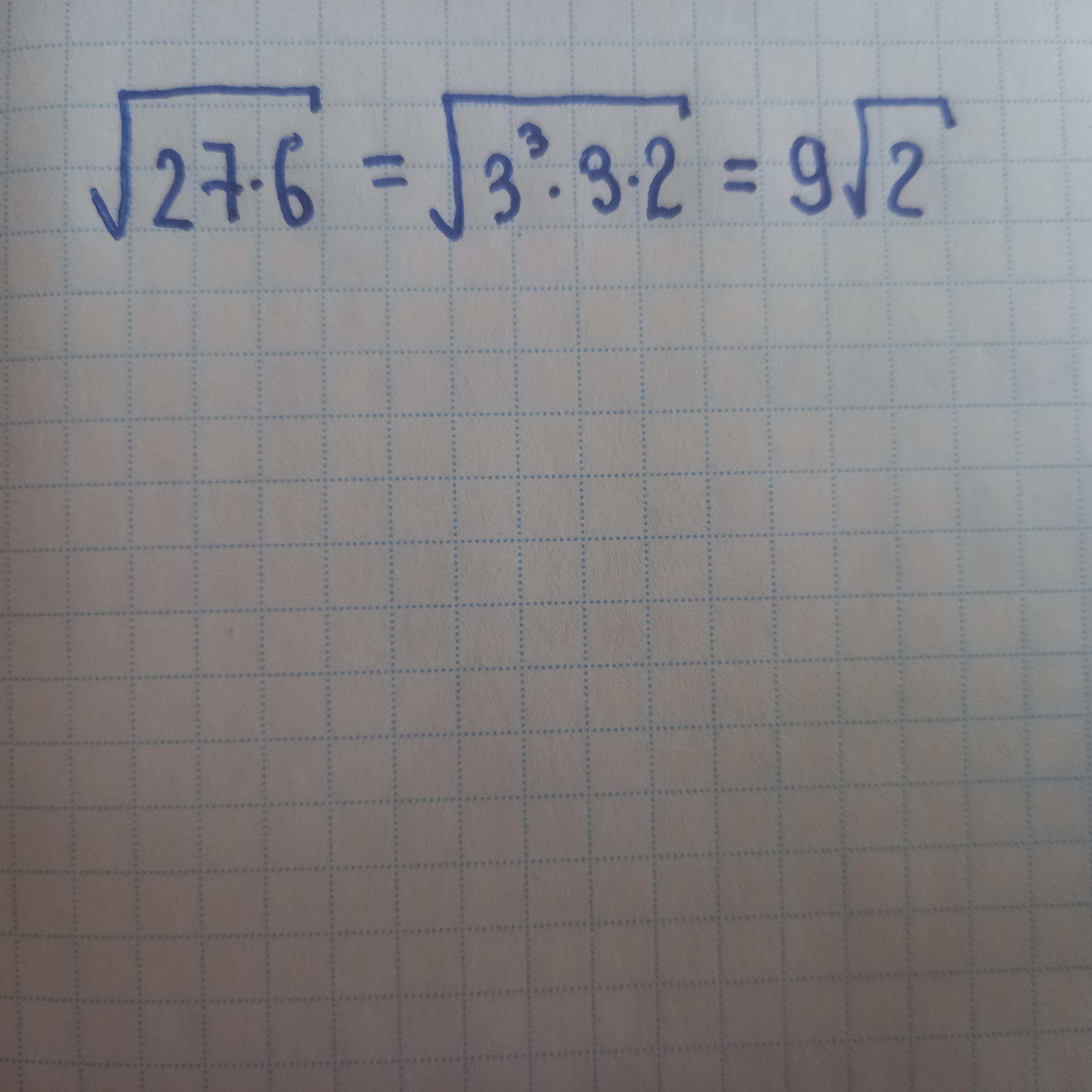 √27×6=√162=√9 (во 2 степени) ×2= 9√2