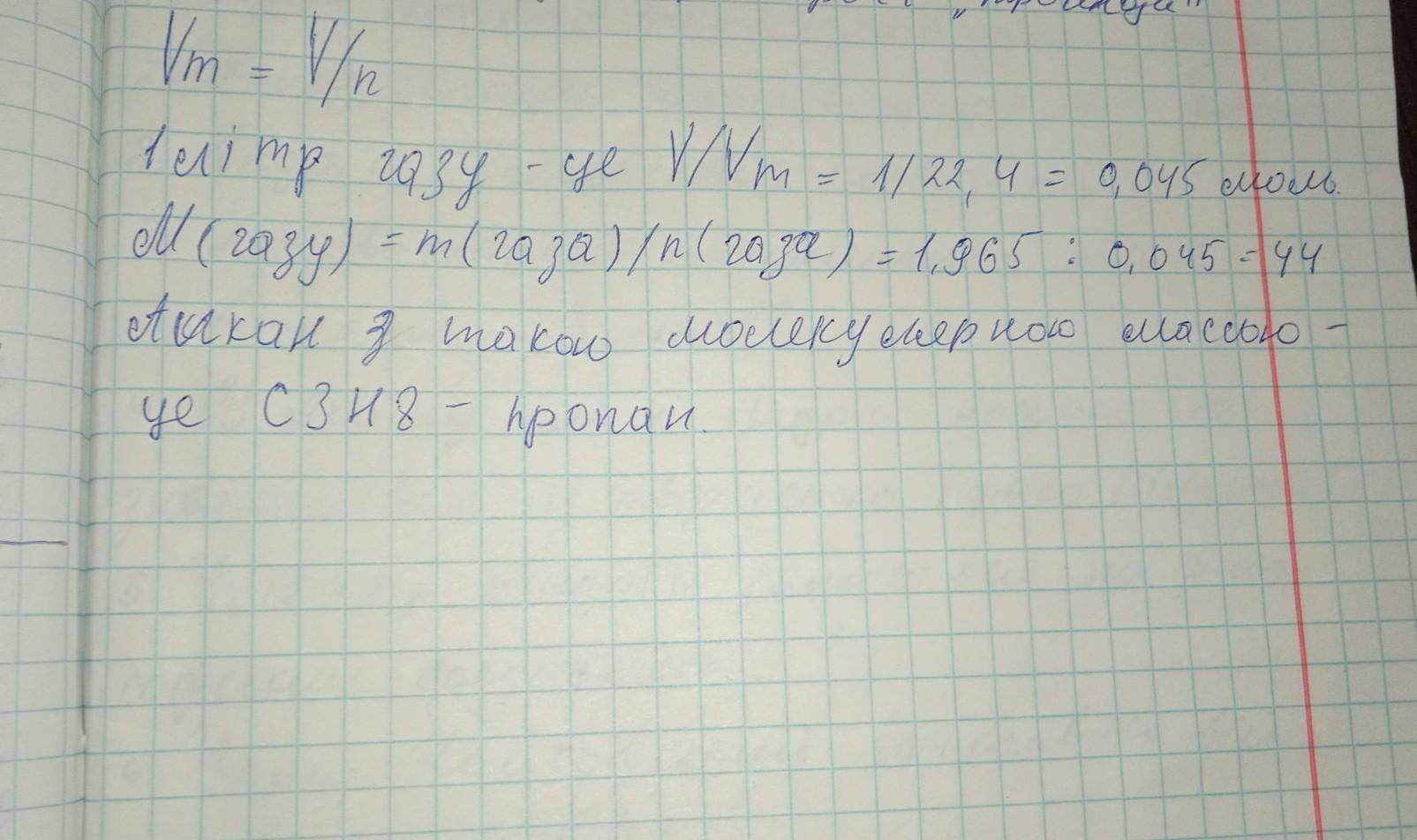 1 л алкану має масу 1.965 г. Визначте його формулу.