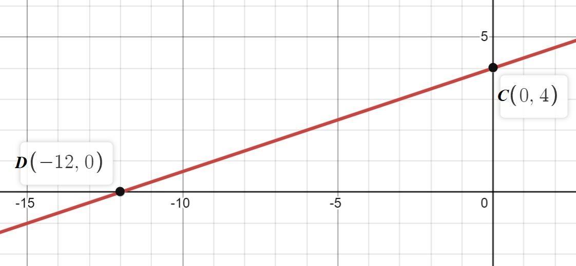0=1/3x+4; 1/3x=-4; x=-4:1/3; x=-4*3; x=-12 => в точке D(-12;0).