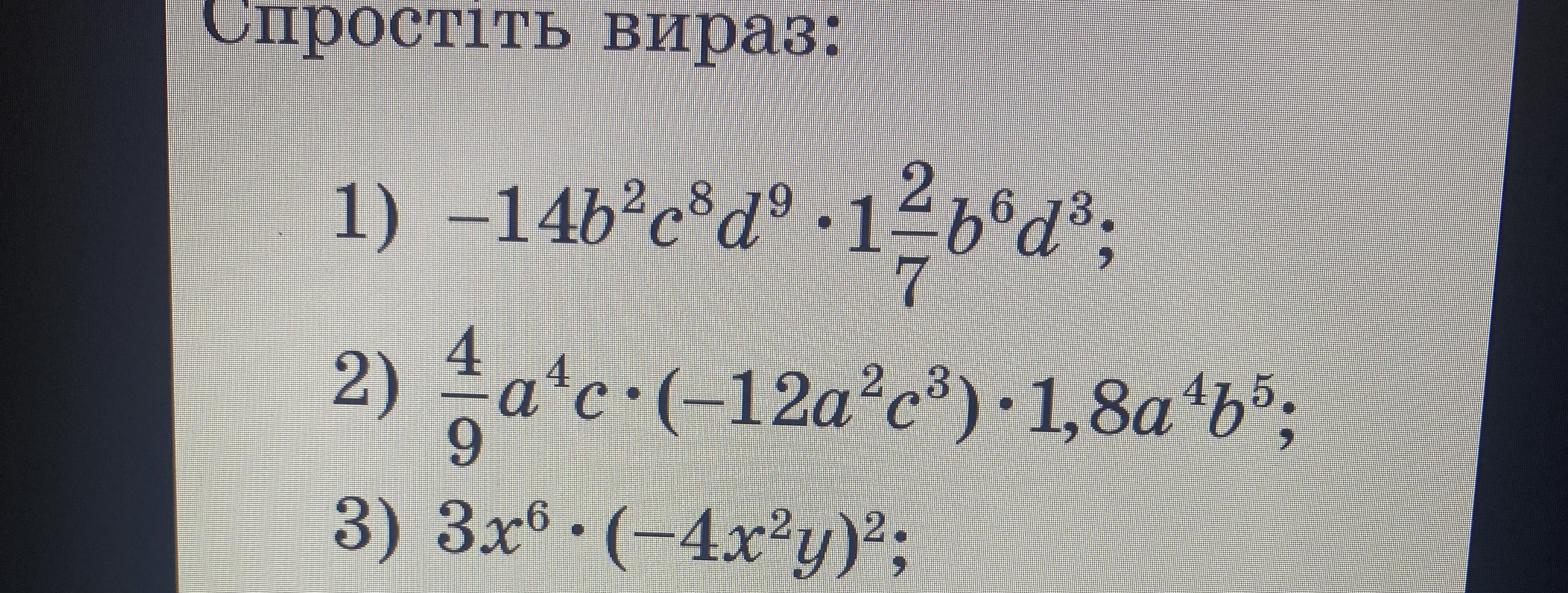 4/9a⁴c * (-12a²c³) * 1,8a⁴b⁵ =
