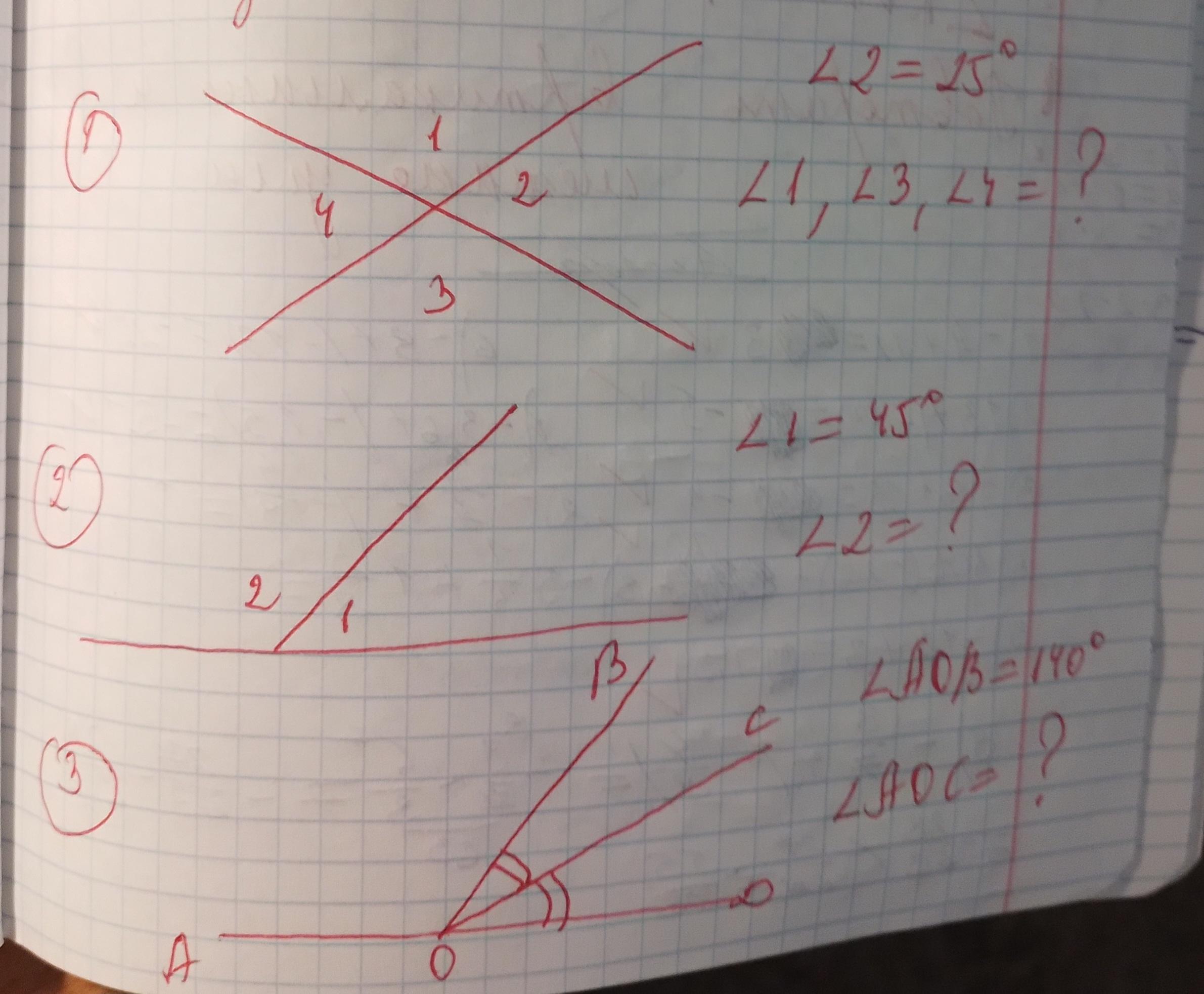 1) ∠4=∠2=25 равны как вертикальные углы , так же углы ∠1=∠3=180°-25°=155°