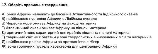 А) Річки Африки належать до басейнів Атлантичного та Індійського океанів