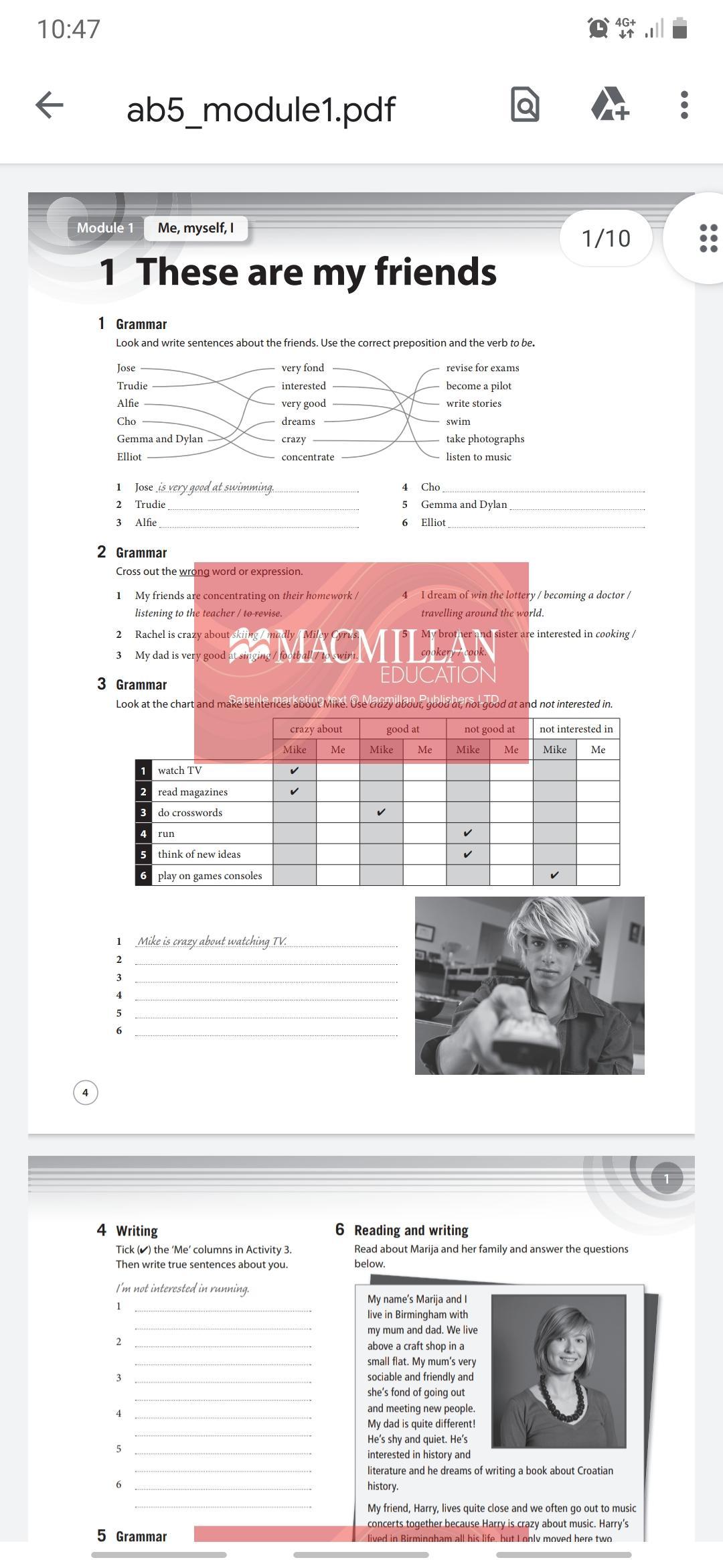 Look and write sentences about the friends Use the correct preposition and the verb tobe