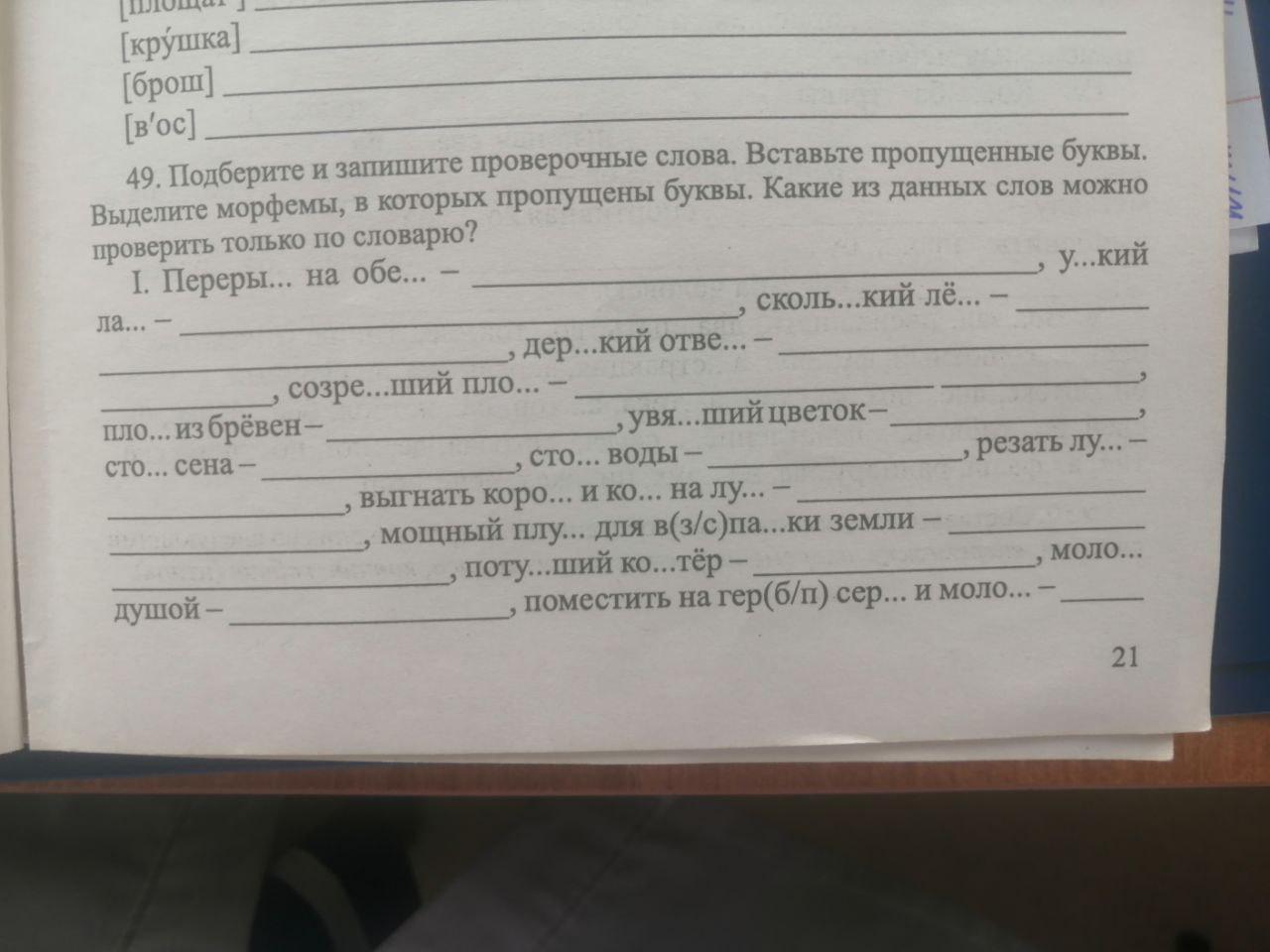 Подберите и запишите проверочные слова. Вставьте пропущенные буквы. Выделите морфемы, в которых пропущены буквы.